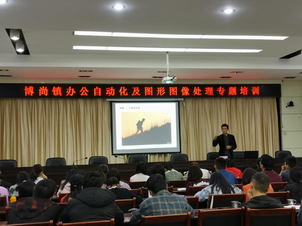 培训为博尚镇政府68名工作人员进行了办公软件应用技巧和图形图像处理技巧专题培训,并根据政府不同岗位的应用需求,针对打印复印设备维护维修、Excel数据高级应用、海报设计、办公网络维护、摄影摄像等方面进行了一对一的耐心指导。