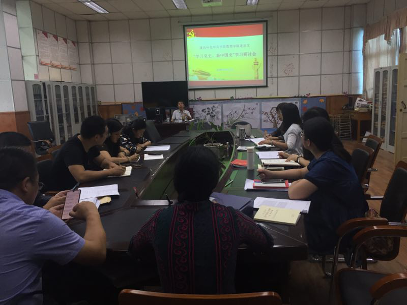 10月12日下午,数理学院党总支在党员活动室召开“学习党史、新中国史”学习研讨会,全院师生党员参加研讨。研讨会在学习习近平总书记在庆祝中华人民共和国成立70周年和招待会上的讲话,习近平总书记在国家勋章和国家荣誉称号颁授仪式上的重要讲话,以及党总支在10月9日组织收看纪录片《淮海战役启示录》的基础上,师生党员以“学习党史、新中国史”为主题畅谈了各自的学习体会。